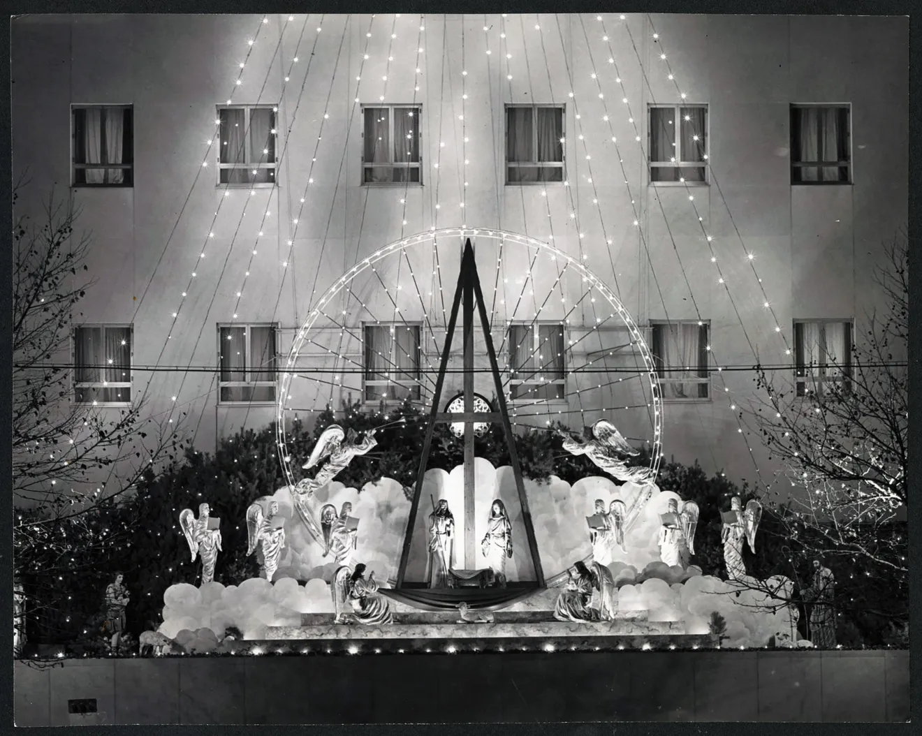 By the next year, the 1932 display had grown to cover most of the building and the Christmas program included events on Christmas Eve and Christmas Day, plus music shared via loudspeaker every two hours through Dec. 26. They also broadcast the program over local radio station WCAH.