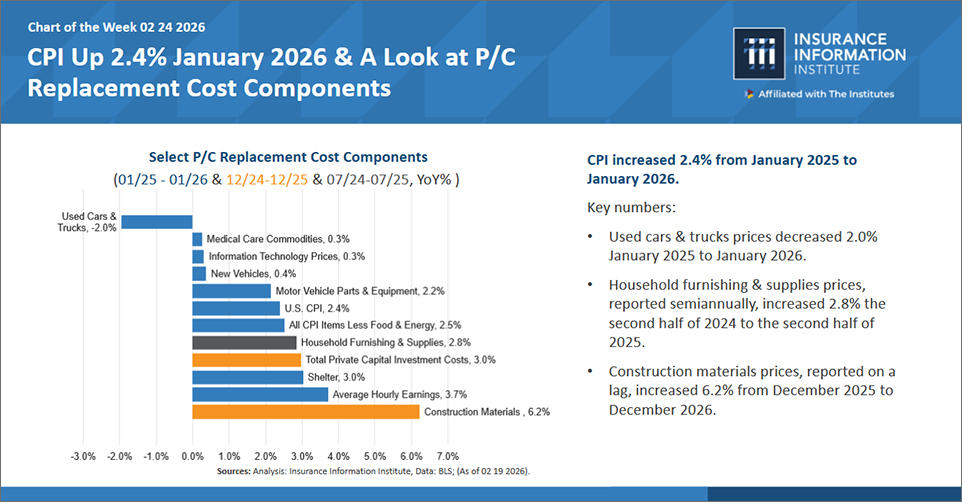 Triple-I chart of the week: CPI Up 2.4% in January 2026 and a Look at P/C Cost Components